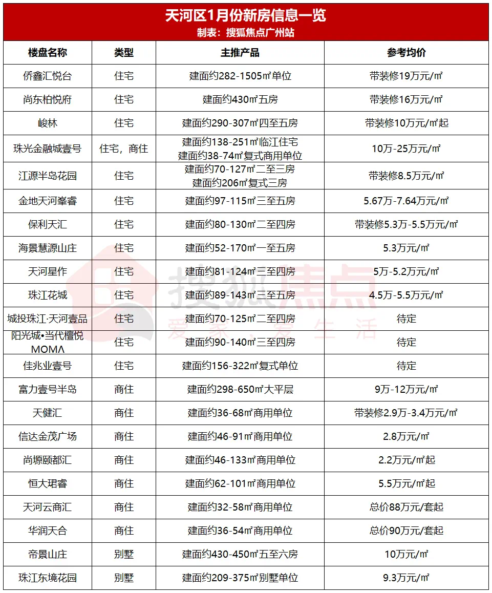 其中,侨鑫汇悦台便以19万元/㎡的均价,先进天河最贵楼盘;尚东柏悦府、峻林则分别以约16万元/㎡和10万元/㎡的售价位列榜眼与探花。这些10万元+/㎡级别的项目在售户型基本为大平层,总价已达到超1000万元/套起步。