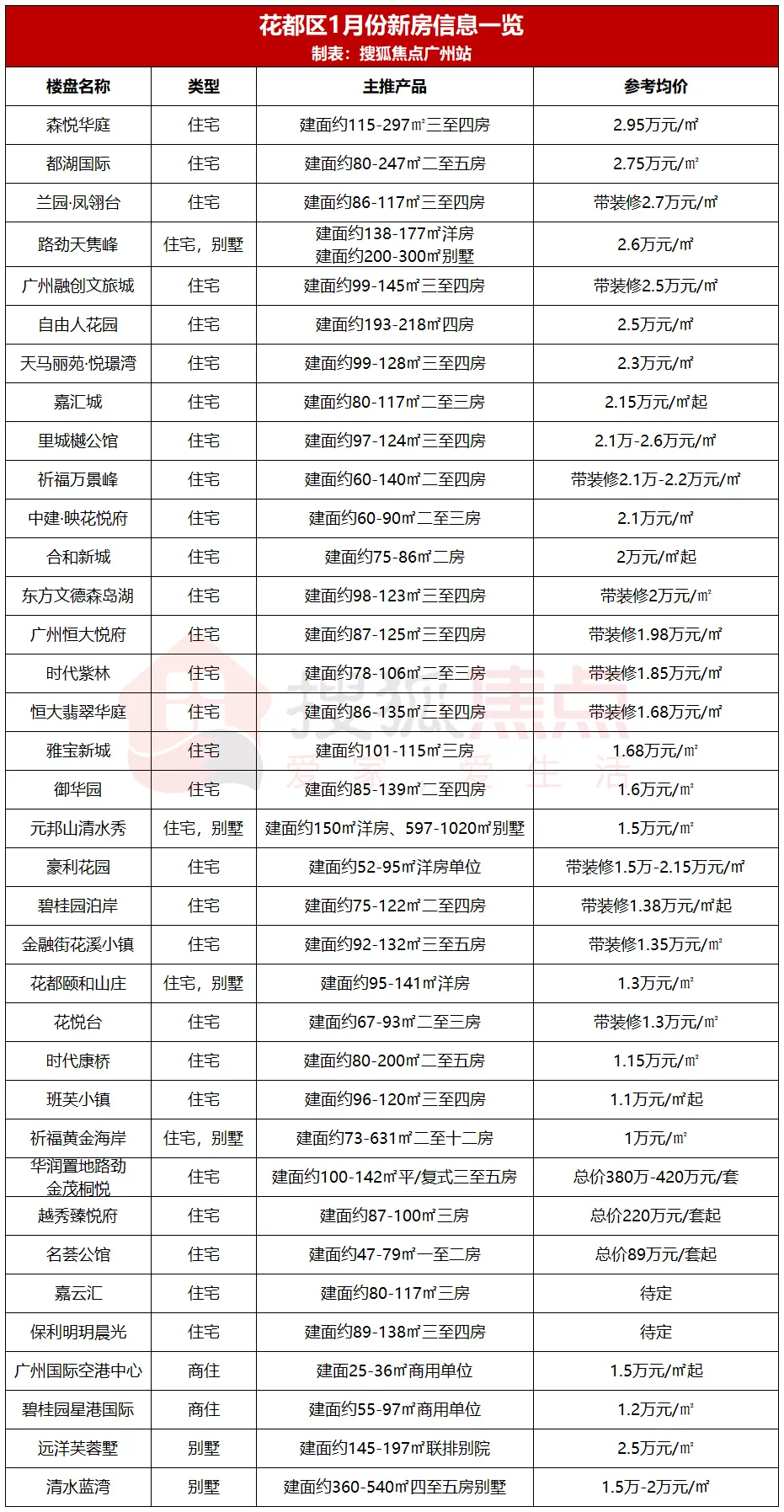 当前,花都区一手住宅的售价主要在1-3万元/㎡区间,价格跨度相对较大。其中,价格较低的住宅项目为祈福黄金海岸,均价仅1万元/㎡;而森悦华庭则以2.95万元/㎡占据花都榜首。