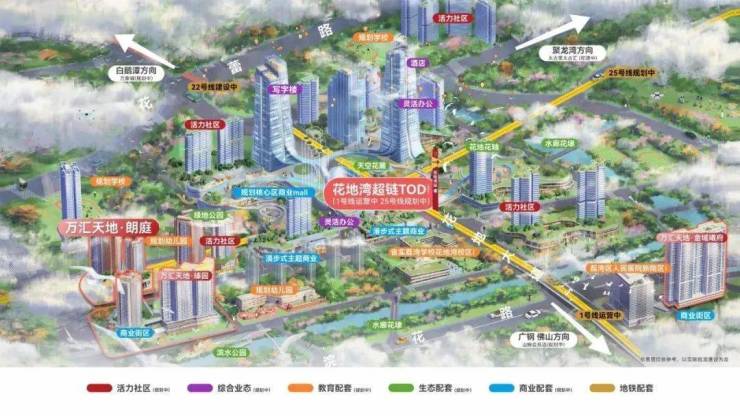 项目配建公办42班小学和36班初中,已宣布引入番禺省一级番禺中学办学。
