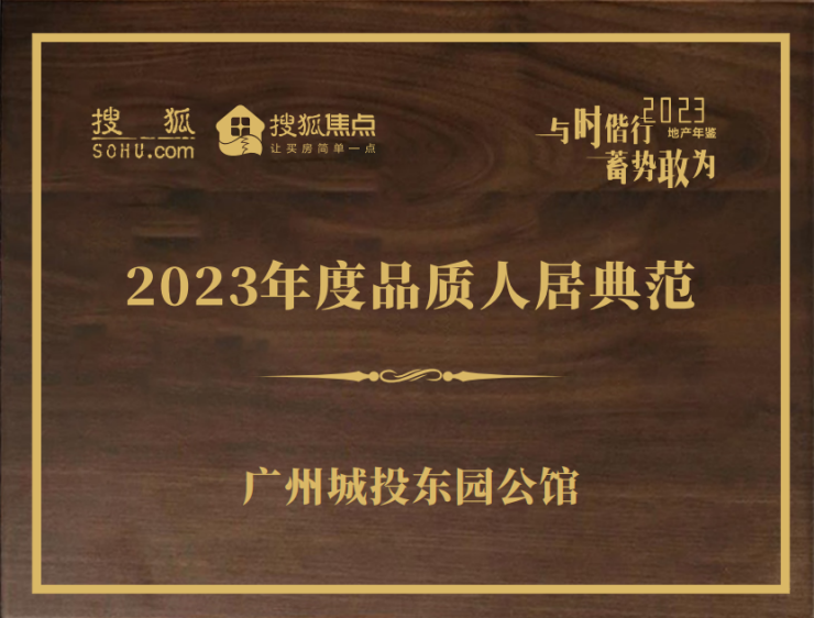 其中,广州城投东园公馆荣获2023年度品质人居典范奖。