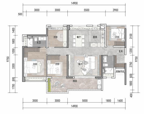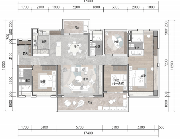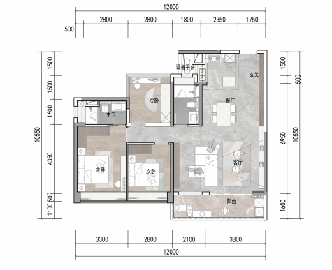 建面约165㎡4房2厅3卫,双套房设计,独立入户玄关、南北对流、约8.8米长阳台等,改善家庭首选。