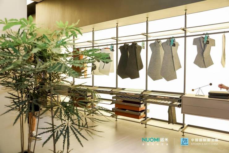 不同于传统单纯陈列式的家居五金展示形貌,诺米把近500平展位打造成品质生活场景,以厨房、衣帽、客厅等生活实景打造沉浸式体验,将诺米橱柜功能五金、衣柜收纳五金、精工水槽、基础五金、智能照明、铝材高定应用为核心的六大体系产品整合其中,成为诺米SI展厅设计理念的实践样板,让诺米家居的“全屋五金生态链”理念得以完整展现:全屋五金保持同风格、同颜色、同品质、同品牌,并提供一站式配齐的解决方案。