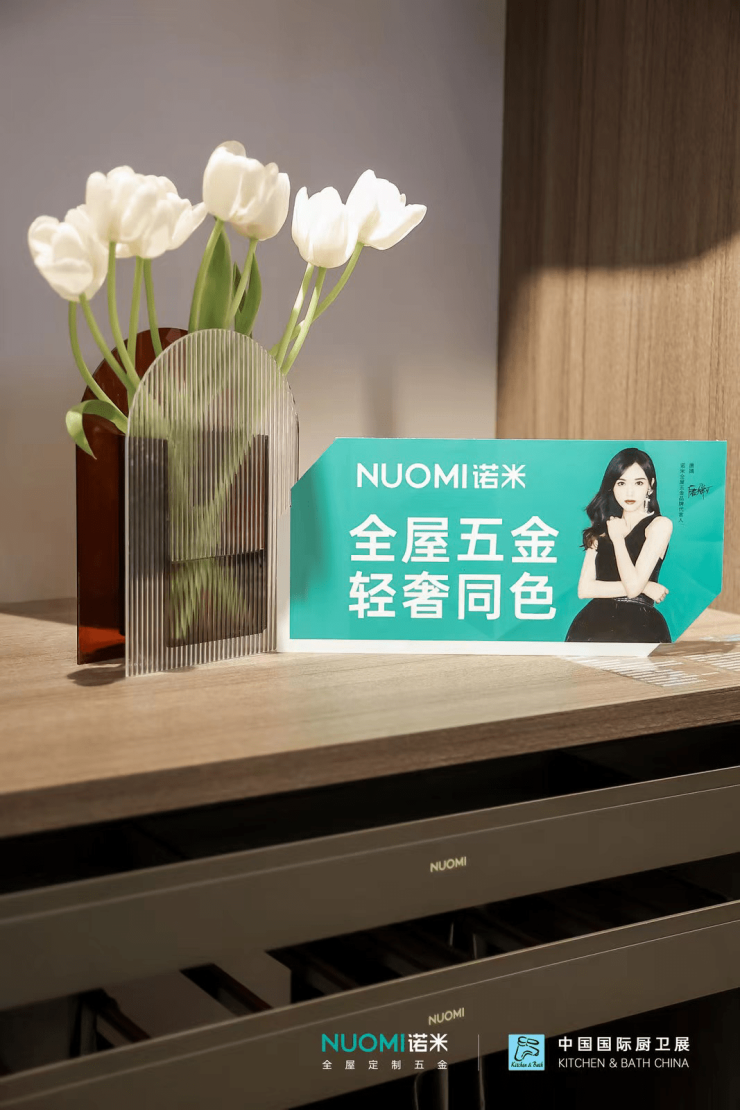 在此次KBC展上,诺米全屋五金在近500平的纵深展台内,以"颜值即正义"开创式的多维度场景,打造的高颜值展位,还原高品质用户考研的生活美学要求,以强大的产品自信、极致的审美品味、高端的品牌形像,彰显20年来诺米深耕家居五金行业的稳健底气,并邀请国民女神唐嫣,成为品牌形象代言人,并同步推出全新广告语“全屋五金 轻奢同色”,再次诠释了诺米锚定高定高颜市场、引领消费升级的的行业领先身位。