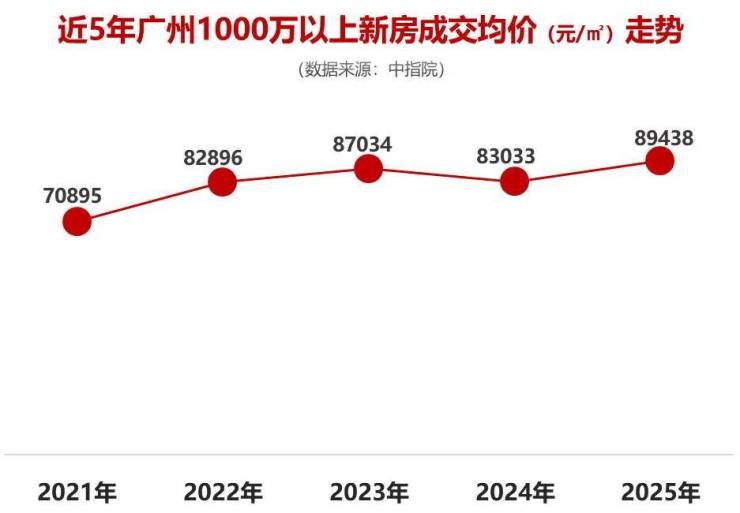 在广州,2025年总价3000万以上一手豪宅已达452套,均价突破13万元/㎡,双双创下近9年新高。凯旋新世界还以全年网签均价21.8万元/㎡的惊人表现,登顶全国单价TOP1。进入2026年,单笔亿元级大宗交易频现,企业领袖组团涌入凯旋新世界,一度引发热议。