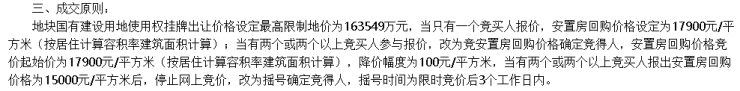 不同于其他地块的“加价竞拍”,该安置房地块采用的是“竞安置房回购价格”模式。