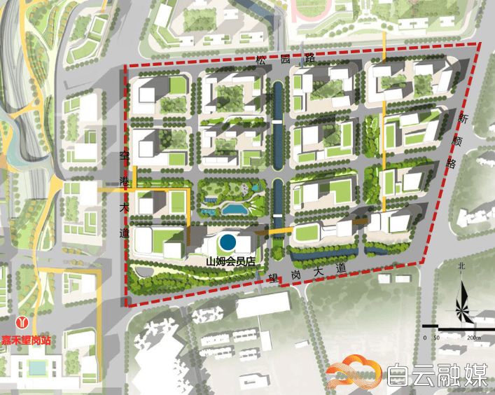 白云首家山姆会员店选址位于广州设计之都北扩区嘉禾望岗望岗大道北侧,是地铁2号线、3号线、14号线的交汇处,属于白云新城嘉禾望岗商务核心区。