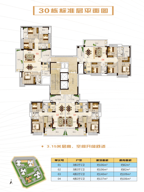 户型建筑均为面积84㎡~140㎡