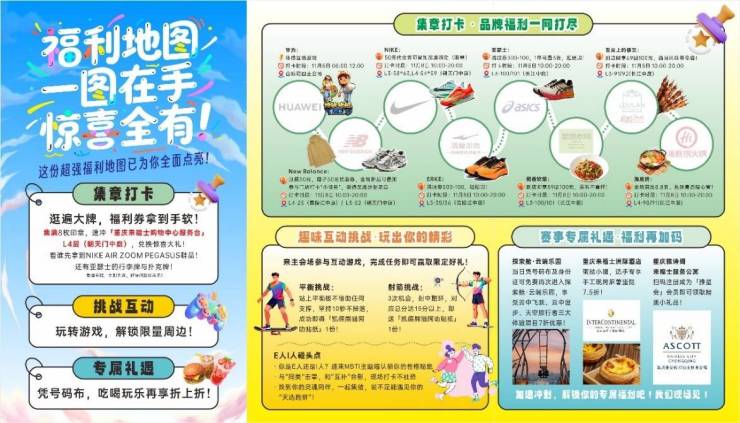今年的赛事现场着力打造“竞技+社交+探索”多维体验。不仅设置MBTI主题社交互动、平衡挑战、射箭挑战等环节,还推出了专属福利地图,汇集重庆来福士8家品牌的联动优惠,选手打卡集满印章即可冲击终极惊喜礼品。重庆来福士的多个业态也共同参与,为选手加油助威:参赛者凭号码布可免费再次进入探索舱·云端乐园,享受云中飞跃、云中漫步、天空旅行者三大体验项目7折优惠;此外,还可以前往重庆来福士洲际酒店及重庆雅诗阁来福士服务公寓品牌摊位解锁更多福利,沉浸式感受地标生活的多元魅力。