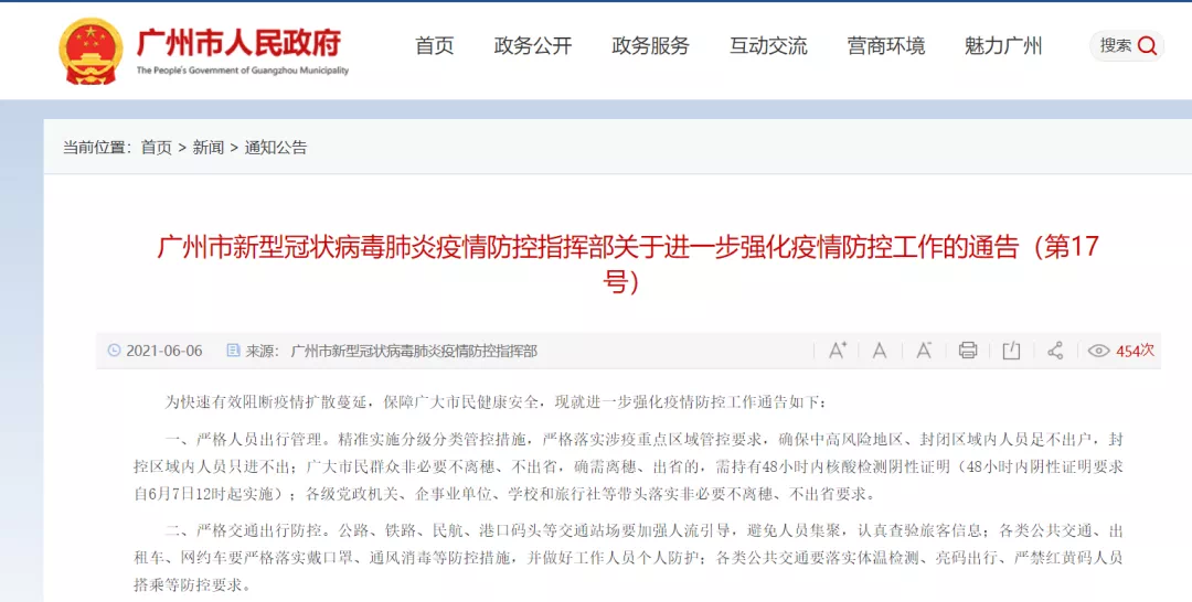 就在刚刚!广州发布17号通告,确需离穗、出省,需持有48小时内核酸检测阴性证明!