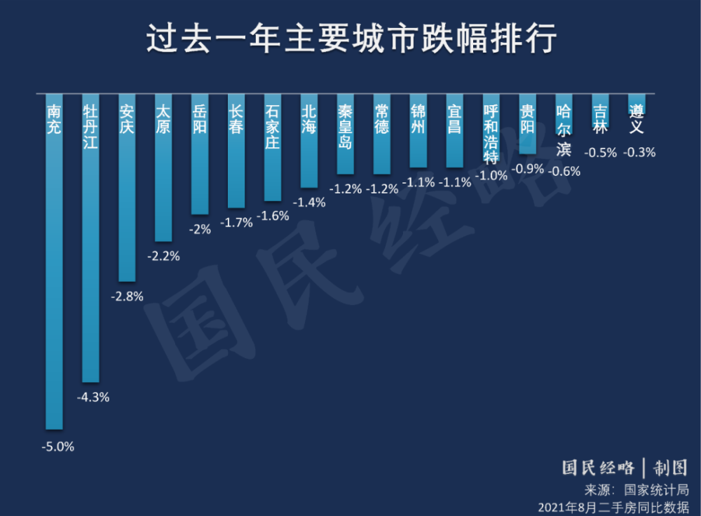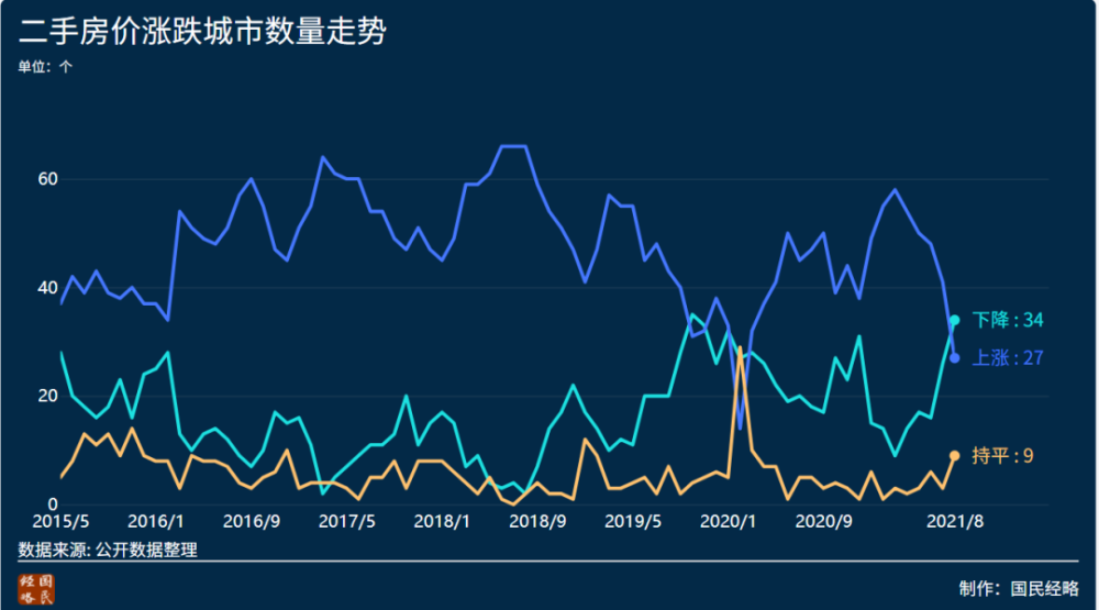 这应该是2015年以来,二手房价环比下降城市数量最多的月份。