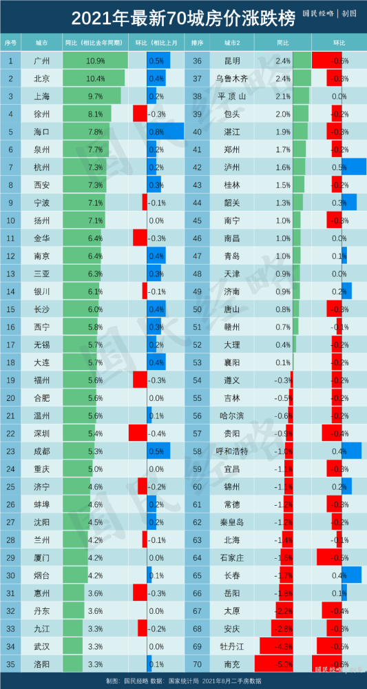 根据国家统计局较新发布的70个大中城市数据,34个城市二手房房价环比上月下跌,17个城市房价不及一年前。