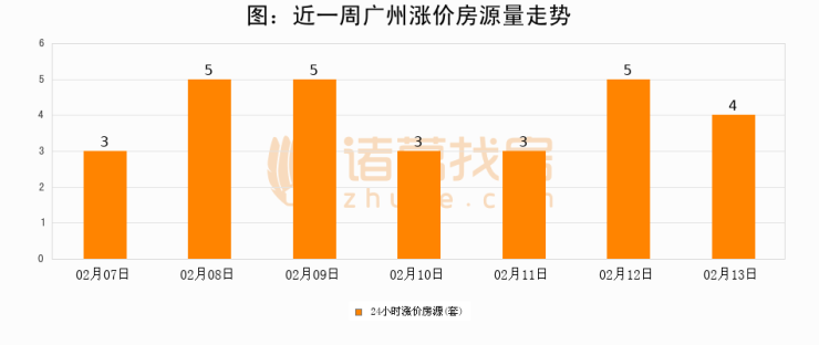 根据诸葛找房数据显示,广州24小时涨价房源量为4套,较02月12日减少1套,环比下降20%。与此同时,涨价房源占比小幅回落,对于购房者来说是一个入市窗口期,购房者可抓住时机入市。