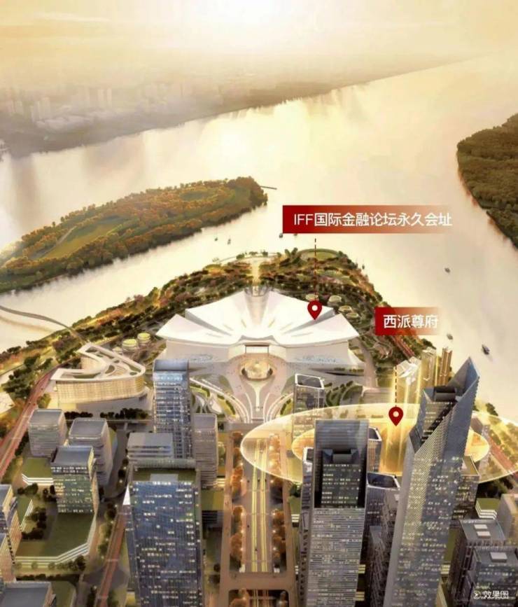 作为国际金融岛尖头排封面,西派尊府取意白玉兰符号展现立面艺术,与一旁的国际金融论坛(IFF)“木棉花开”交相辉映。