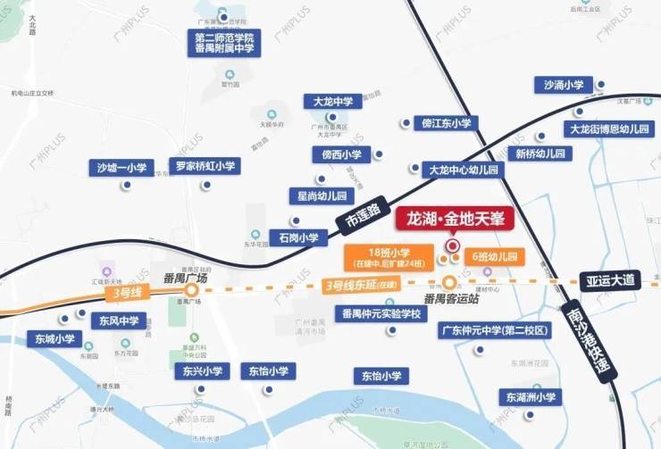 配套有18班的小学(在建中,后扩建24班)和6班的幼儿园,项目距离广东仲元中学第二校区仅约900米,板块周边还有禺山高级中学、市桥星海中学等环绕。(注:学校招生范围以官方公布的招生地段为准)