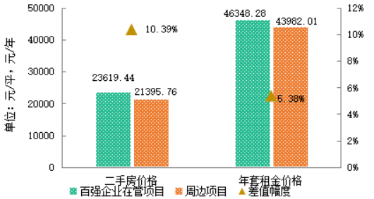 高品质的物业服务对业主房屋增值保值效果越发凸显。百强物企研究成果显示,2021年,百强企业在管项目二手房价格为2.36万元/平方米,高于周边项目二手房价格10.39%;百强企业在管项目年套租金价格为4.63万元,比周边项目租金高5.38%。