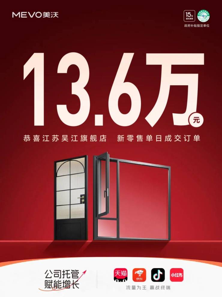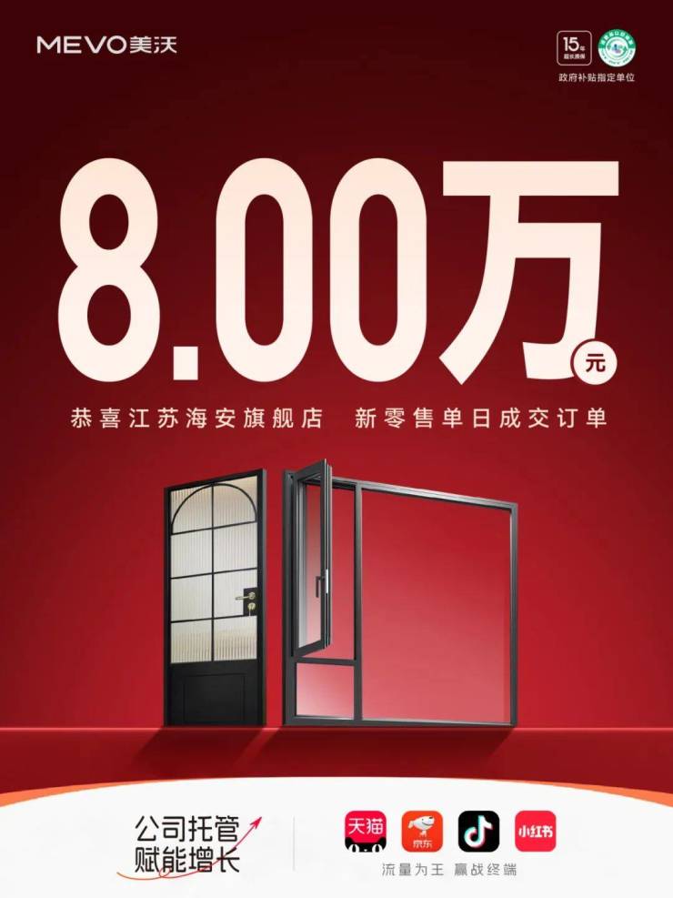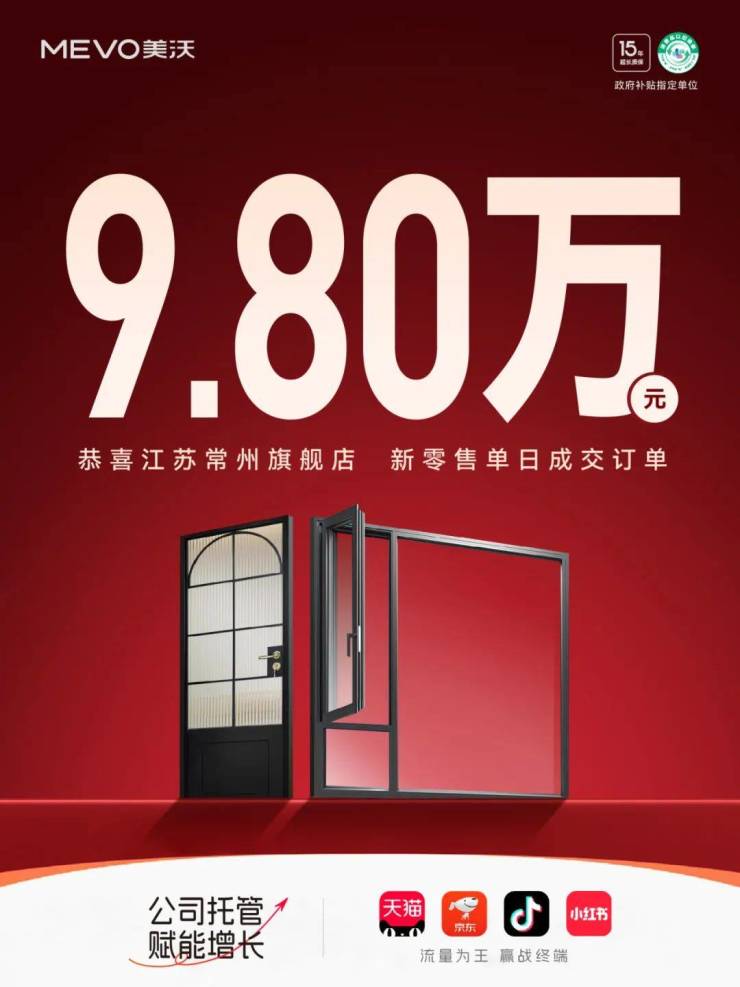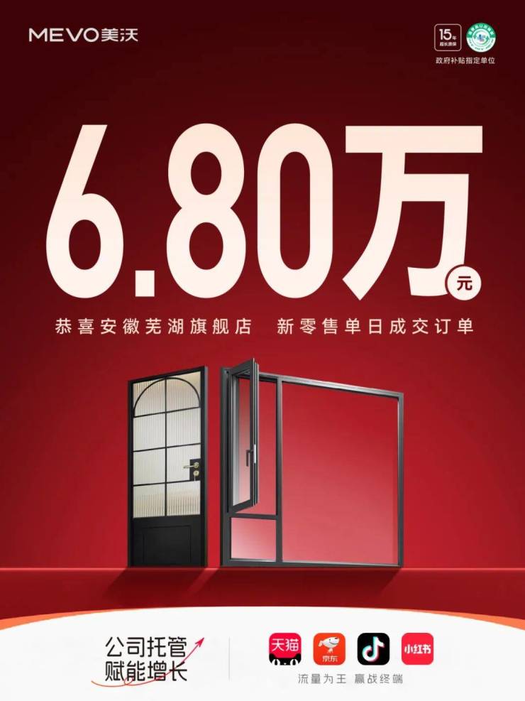 618大促活动中,美沃门窗借助国补红利政策,联合天猫“美沃家居旗舰店”及京东“美沃门窗旗舰店”赋能终端新零售获客,强势撬动业绩增长。美沃门窗通过总部流量托管,利用“一店一策”深度赋能,打造新零售业绩增长新引擎。在新零售全链路的赋能下,终端门店业绩飙升,美沃品牌GMV大幅增长,新零售销售额环比增长86%,以亮眼成绩再创新高!