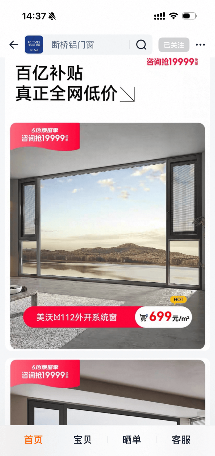 值此618年中大促黄金时期,美沃门窗倾情推出“618焕窗季·国补超给利”主题大促活动,以“国补直减15%”、“爆款699元/㎡再送1㎡”等重磅福利回馈消费者。同时,美沃门窗携手全国500+门店,通过线上线下全方位、多维度的营销布局,以浩大声势引爆终端消费热潮。凭借强劲的品牌势能,美沃门窗再次荣膺天猫&京东「门窗类目十大品牌」,拉动业绩增长态势,完美收官!