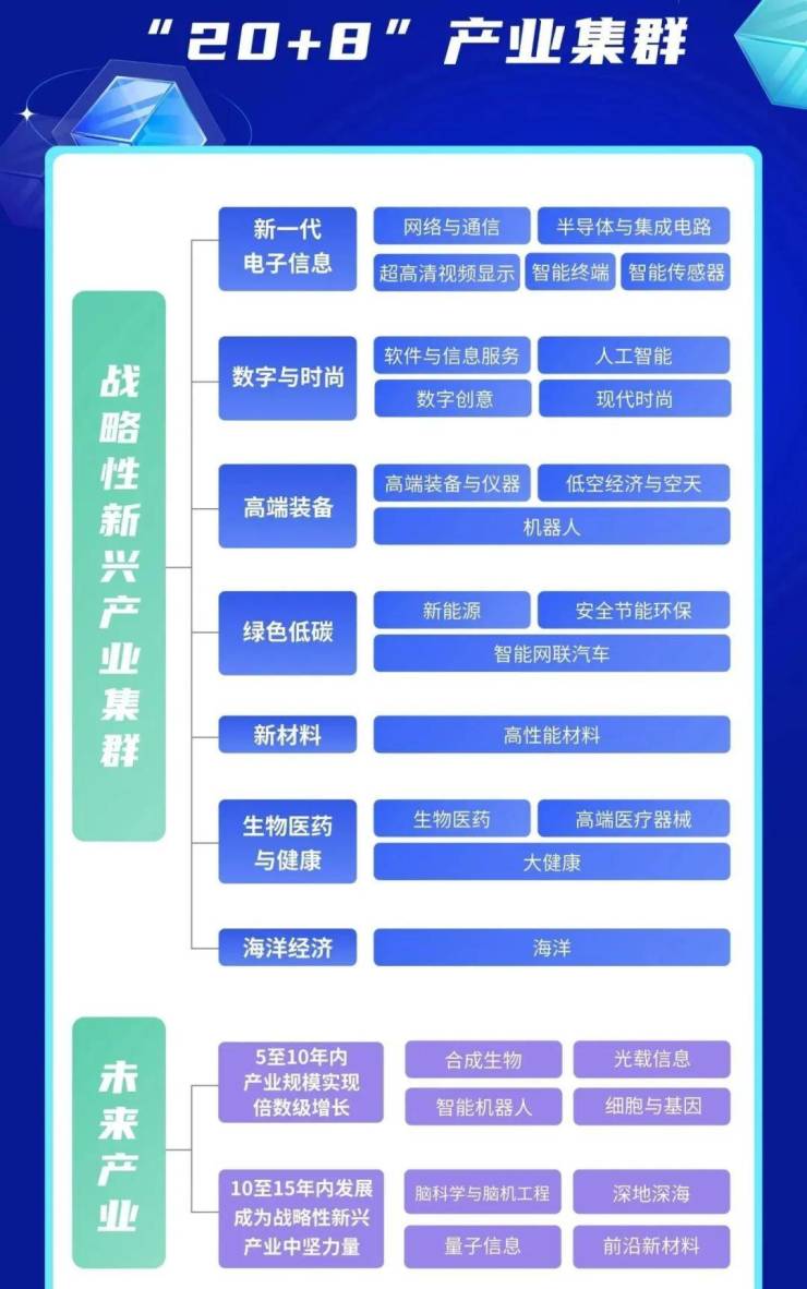 电子信息制造业、软件和信息服务业、金融业等高端产业相对发达,且形成“20+8"的新兴产业集群。