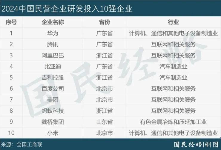 而根据全国工商联发布的民营企业研发投入500强榜单,华为、腾讯、比亚迪等深圳企业,研发投入跻身全国TOP5。