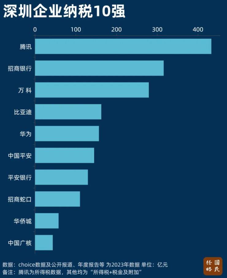 以此衡量,深圳纳税贡献最高的5家企业:腾讯、招商银行、万科、比亚迪、华为。