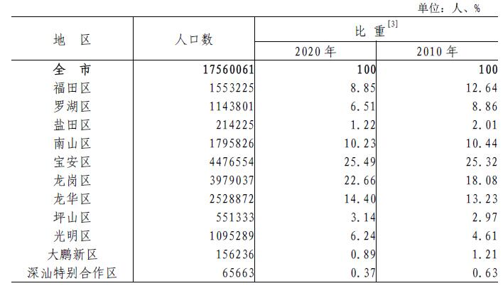 深圳市第七次全国人口普查公报,图片来源:深圳市统计局