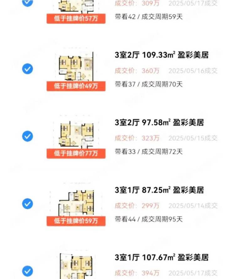 同样还有珠江花城,根据贝壳上的成交记录显示,今年以来“3字头”房源累计成交5套,成交房源数量远高于2024年。