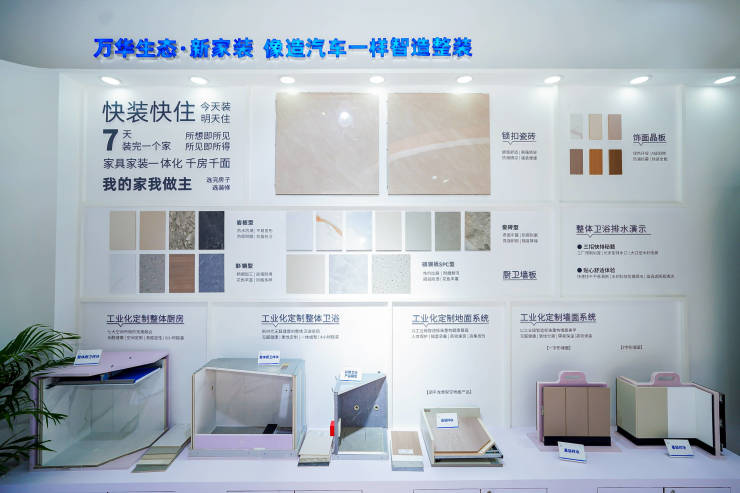 在全屋无醛产品体系之上,万华生态新家装集团以 “绿色工业化定制整装” 方案,实现了 “环保底线” 与 “效率升级” 的完美融合。中国建博会(广州)现场的 “极限实验” 直观展示:十大工业化定制部品体系,整体卫浴 4 小时拼装完成、36 小时空间焕新,闭水试验 72 小时无渗漏,排水效率提升 40%—— 这一切的前提,是 “即装即住” 的无醛承诺。