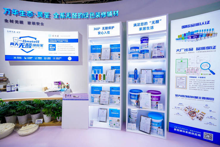 万华生态集团的无醛主张不止于板材。此次展会上,其联合旗下万华生态科技推出的“零醛家族”涵盖灵荃艺术漆等 30 余个辅料品类:艺术漆以天然贝母为调色成分,通过 SGS A + 认证,实现“无醛无苯” 且 “孩子涂鸦一擦净”;胶粉类辅料采用生态粘合剂,从腻子到防水剂,构建起“基材 - 辅料 - 部品”的全空间无醛生态。