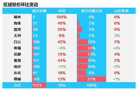 值得一提的是近期增城成交表现持续走强,上周共成交301宗,单区占全市成交的27%!这一数据或许表明,许多刚需已经放弃持币观望,选择积极入市。