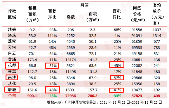 表现为以刚需买家为主的增城花都南沙三区,去年的网签套数及面积同比呈现较大幅度下降。
