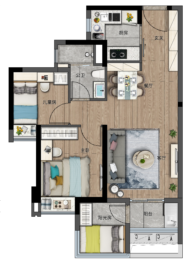 (建面约70㎡三房 图片来源:网络)