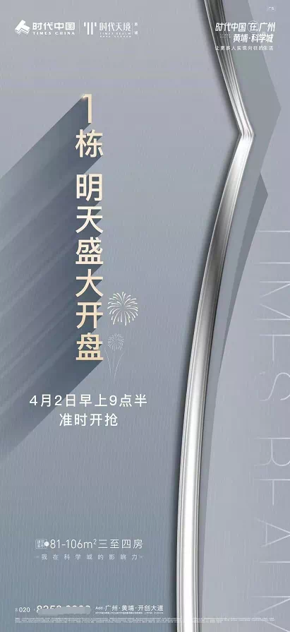 【黄埔区】时代天境全新1栋开盘,推出建面约81-106㎡三至四房;