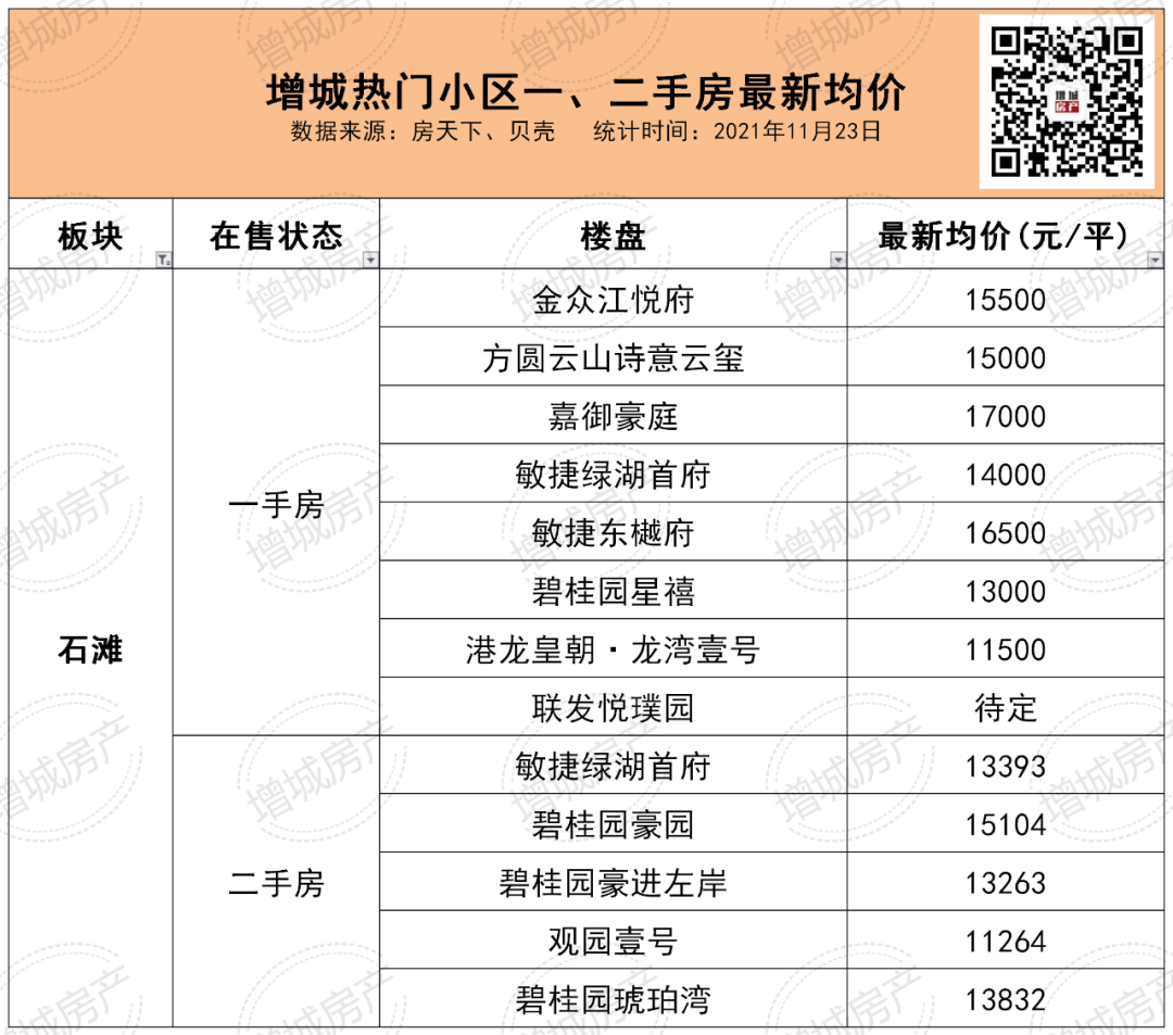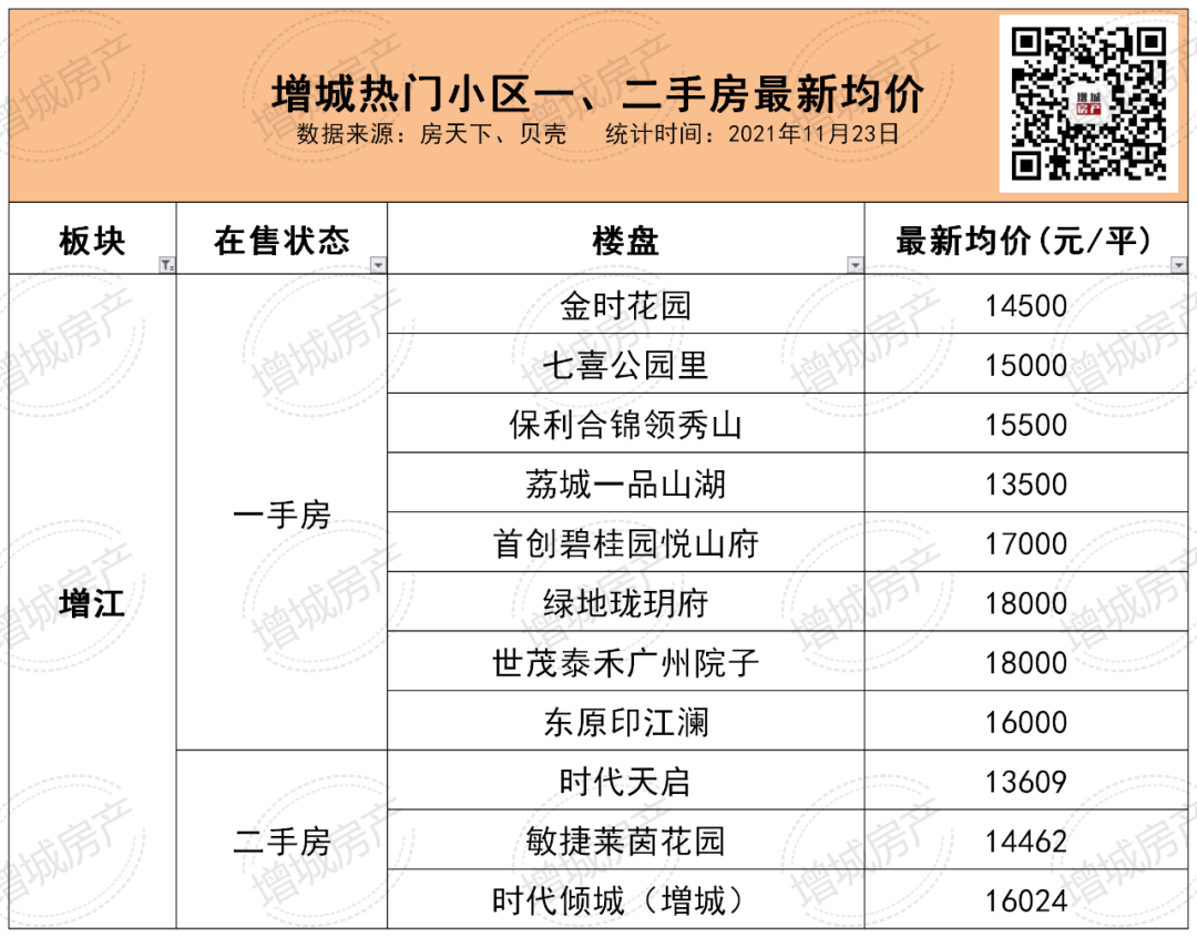 较新!增城13个镇街近145盘均价揭晓!