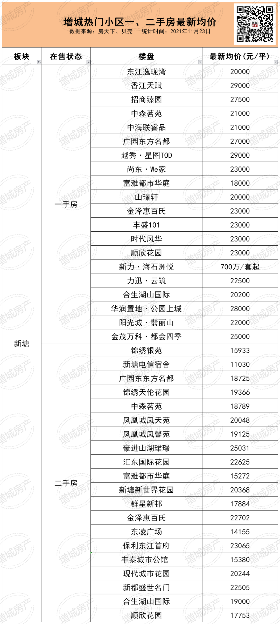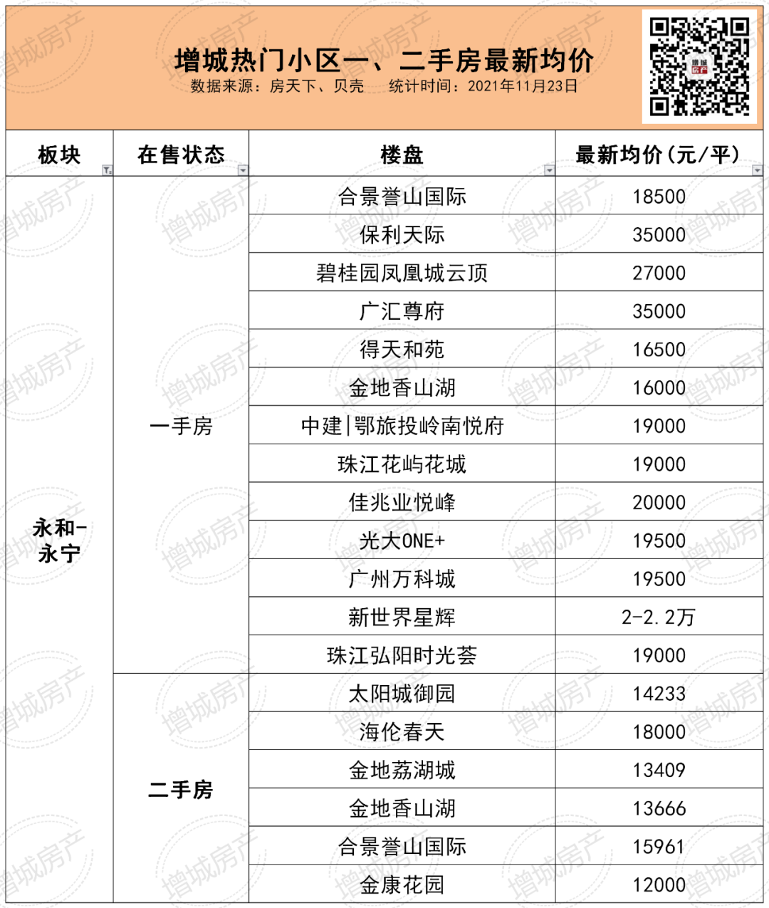 今天,房产君已经整理好了增城一、二手房较新价格,一起来看看。