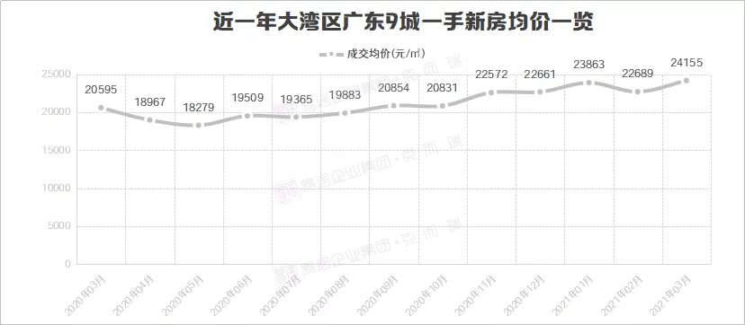 据克而瑞数据监测,截至3月15日,大湾区广东9城一手新房均价头一次突破2.4万/㎡,同比上涨17.3%,新房均价再创新高!