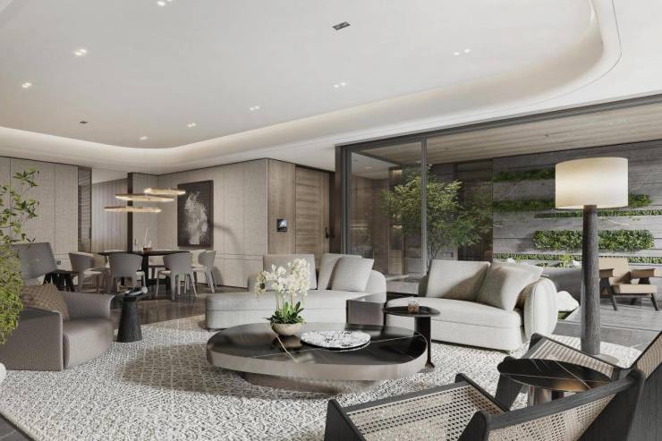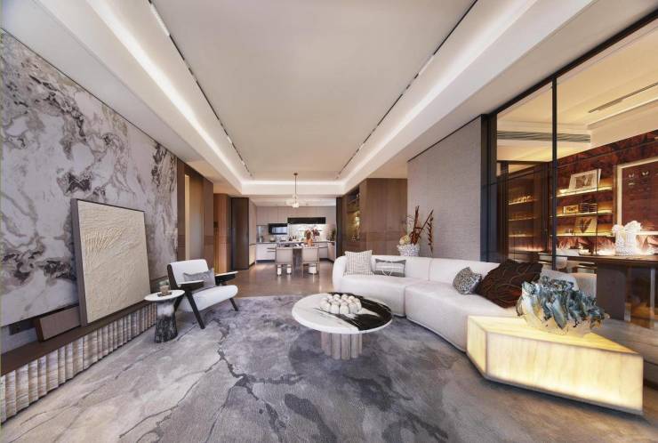 而整个空间功能的极致丰富度,如同在一片森林中,置入了一个放大版的“大平层”,不像是一个售楼部,更像是一个“家”,高端圈层日常生活所需的料理聚会、艺术收藏、阅读休憩、休闲观景等场景,都容纳在了这个奢谧、静享的空间之中,自然自由自在的生活方式,再一次展现了中海“家庭共融”的领先产品力。