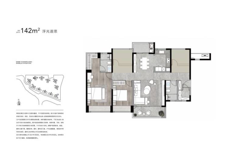 LDKG动区联动,布局开敞、又灵活多变,可变空间(X)与客厅( L)餐厅( D),厨房(K )、户花园(G),共同组成家庭共享核心区,打造"去中心化"再"聚合空间",多重生活场景塑造了复合型家庭起居空间。