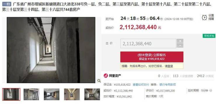 阿里法拍平台显示,此次被拍卖的744套房源位于项目的负一层、负二层、第三层至第八层、第十层至第十八层、第二十层至第二十八层、第三十层至第三十四层等多个楼层,几乎涵盖了整个项目。