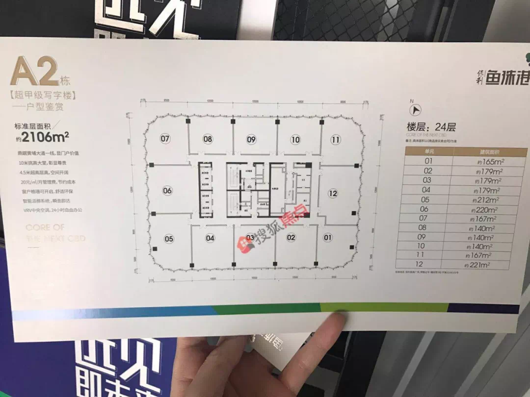 项目位于5号线三溪地铁站上盖,可眺望海景。保利鱼珠港共由9个地块组成,5期打造,占地60万平方米。A1-A2栋供个人购买的甲级写字楼,S1-S4供企业整栋购买。A1、S2-S3栋已售罄。目前主推A2栋136-270平米的平层写字楼单位,层高4.2米,净高2.9米,均价3.6万/平,物业费20元/平/月,预计今年六月份交楼。