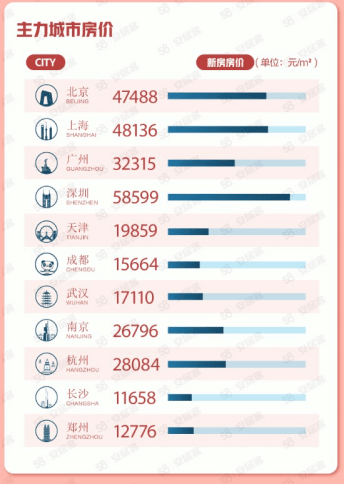 报告显示,5月65城新房线上均价为17549元/㎡,环比上涨0.11%,全国重点65城中有26城新房房价环比上涨。一线城市中,深圳新房线上均价为58599元/㎡,上海和北京新房线上均价分别为48136元/㎡和47488元/㎡,广州新房线上均价为32315元/㎡。新一线城市中杭州和南京的新房线上均价分别为28084元/㎡、26796元/㎡。