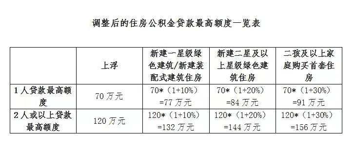 2.使用住房公积金贷款购买自住住房,且所购住房为新建一星级绿色建筑或新建装配式建筑的,住房公积金贷款最高额度可上浮10%。