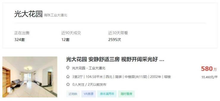光大花园,因靠近地铁沙园站、教育及社区环境等优势,也一直备受市场青睐。链家平台数据显示,截止至11月28日,该小区一个月的带看量已达2595次。