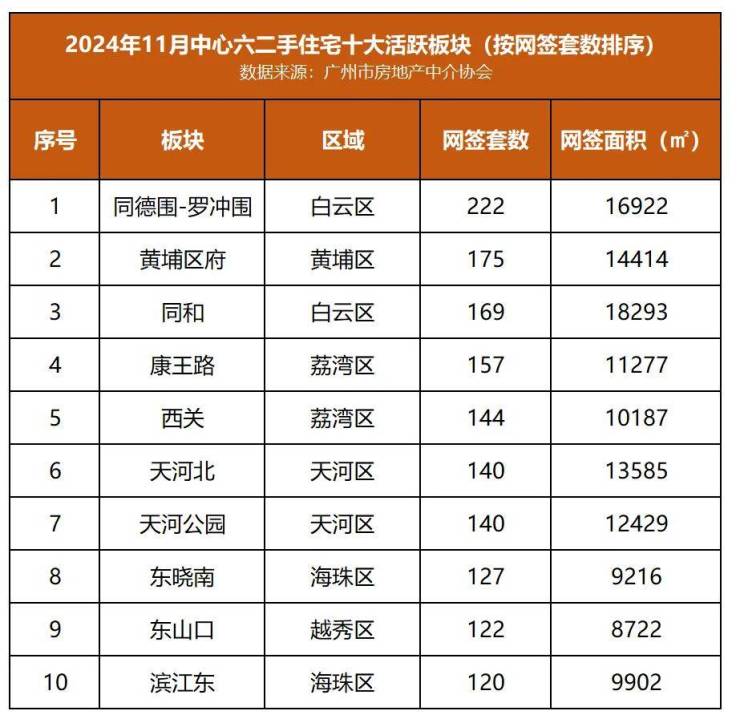 中心六区中,同德围-罗冲围、黄埔区府、同和、天河北、东晓南可以说是该榜单中的“老面孔”了。