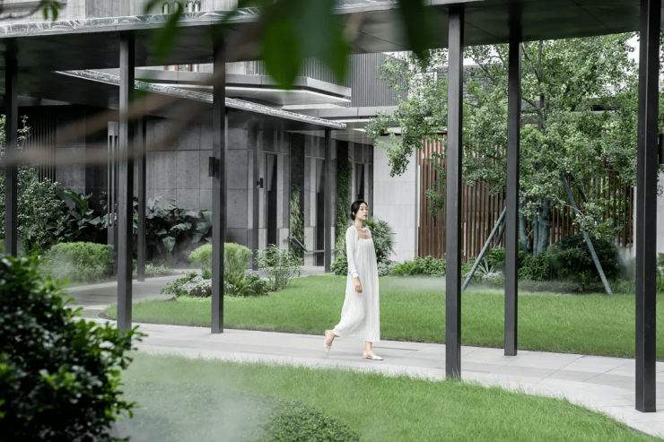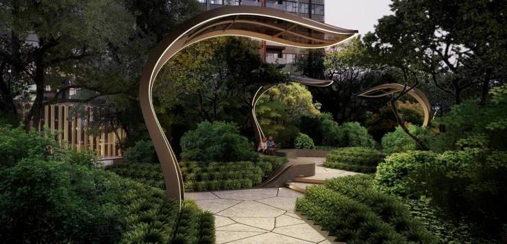 雅致奢华的风雨连廊,柔和了城市里的繁华气息;随处可见的艺术装置,让风景随步履而流动,将生活慢慢从嘈杂过渡到静谧氛围中来,让每一次归家的过程都成为一种奢华享受。