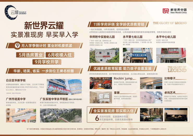 置业新世界云耀,即买即享200万方大城生活,5月置业,6月收楼,9月即可入学,享华附培英顶级名校圈!