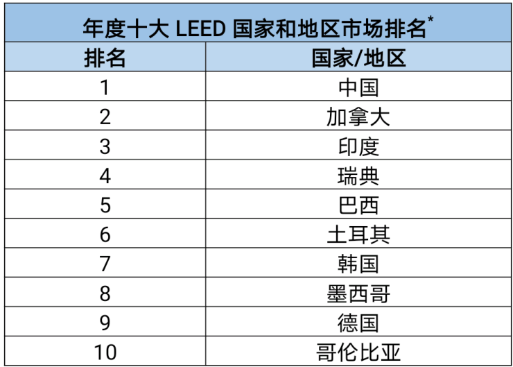 中国先进全球十大LEED绿色建筑市场排名榜首