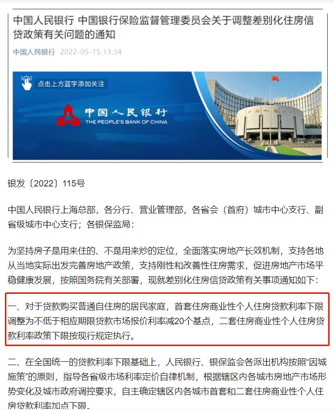 对于贷款购买普通自住房的居民家庭,首套住房商业性个人住房贷款利率下限调整为不低于相应期限贷款市场报价利率减20个基点,二套住房商业性个人住房贷款利率政策下限按现行规定执行。