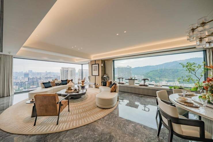 品鉴会伊始,媒体嘉宾循着专属动线徐徐而上,在建面约240㎡的云端实景中,见证一场塔尖生活的当代演绎:电梯门开启的刹那,时空完成从容转换——城市脉络与云山翠色在此完美相融,勾勒出超凡脱俗的生活图景。这不仅是一次空间展示,更是一场东方美学的深度对话,一次与千年地脉的精神共鸣。