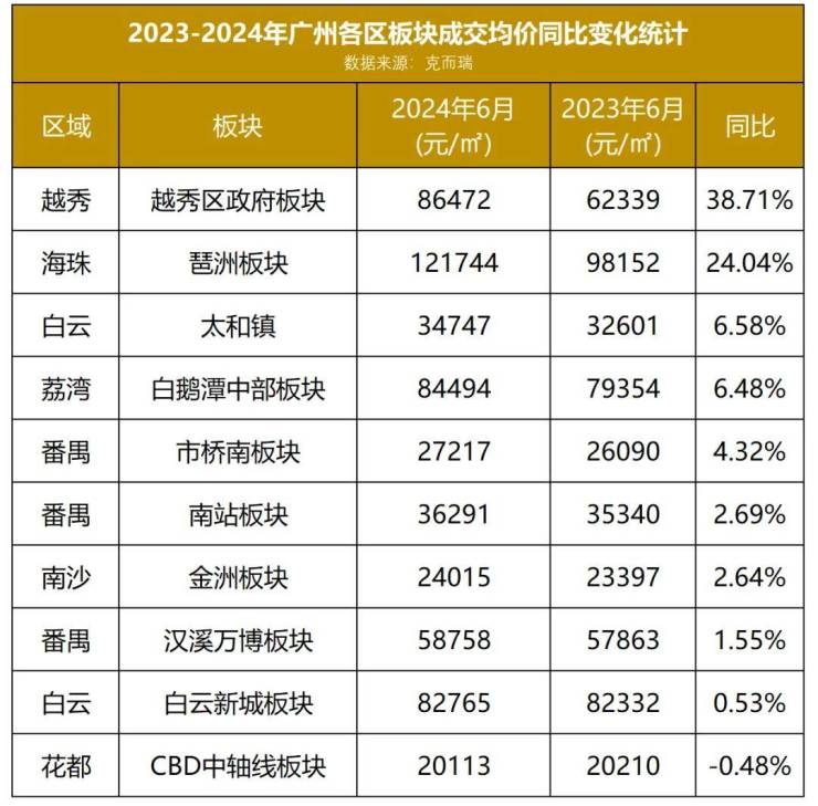 特别是越秀区政府与琶洲板块,其涨幅不仅超越了20%的大关,更在全市范围内独占鳌头。