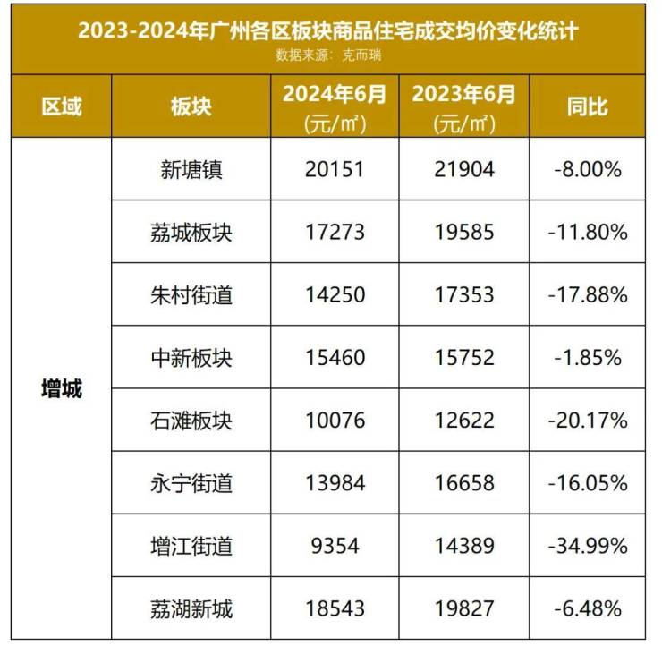 从各大板块的成交均价来看,仅新塘镇均价在2万+,其他区域价格大多都在1字头,而增江板块跌落1字头,也是增城区各大板块中,同比降幅最大的区域之一。